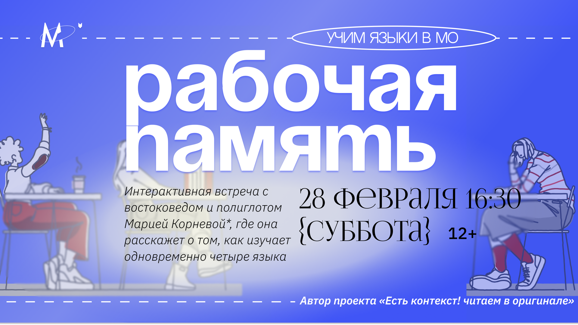 Полиглот и востоковед Мария Корнева (автор проекта "Есть контекст!") поделится опытом о том, как эффективно подойти к изучению языков, сделать процесс интересным, регулировать сложность изучения без ущерба для результата, и как взять максимум от своей рабочей памяти.